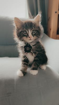 He has a sloped nose and when I was looking up cat breeds Norwegian came up. He’s a very determined little cat and wants to be loved on his time and play on his time!