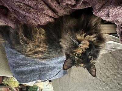 I was told she was a Maine Coon kitten but I don’t think so. She’s not that big.