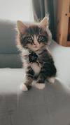 2 and half month old female. She looks like a Maine Coon mix but not sure?! Please help lol