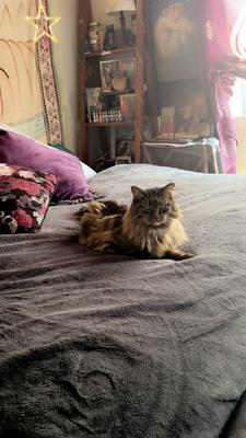 She is quiet, until she hungry or wants her litter box cleaned. Mellow and laid back, so sweet and loves to cuddle.