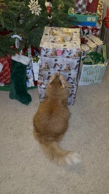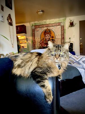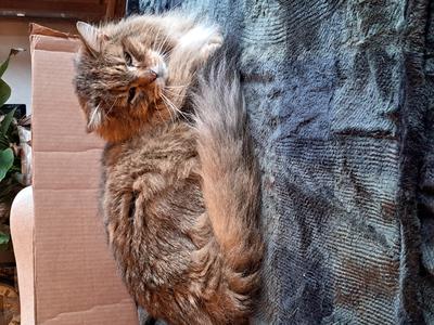 He is verbal only when he wants to eat. He has thick fur, which I try to brush every day.