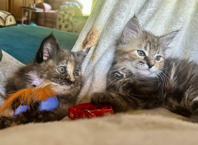 I fell in love with them immediately, so I don’t care if they are MC, but there is a cattery about 45 minutes from where they were found that “specializes” in tortie/torbies, so I thought I’d ask.