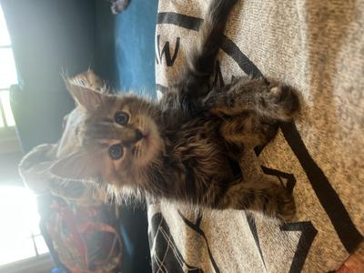Emily is a 9 week old female. The owner said her dad is a Maine Coon mix. I've had her a week.