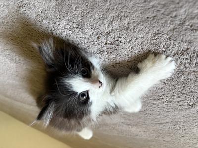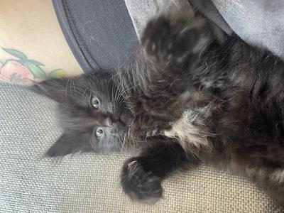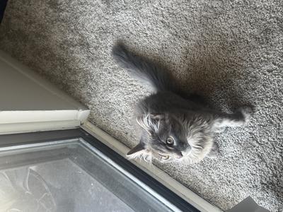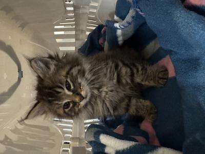 Jagger is around 6-8 weeks old and was found in a car. He is very playful and extremely fluffy.