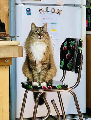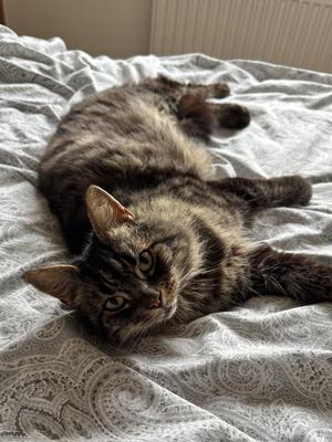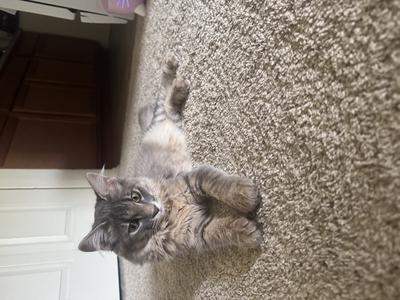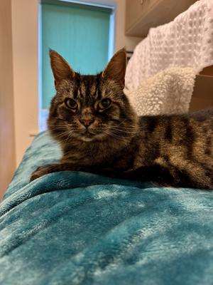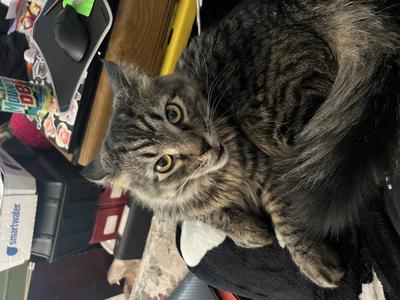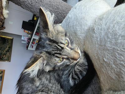 He was found in a garage at the end of January 2025. The Vet said Maine Coon cats are never stray.