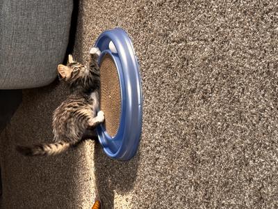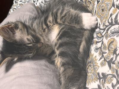 He has a playful nature and always engaged with his toys. When he's not darting around, Mickey loves to snuggle, offering affection to everyone in the family.