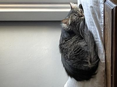 He loves being outside as much as possible and will spend all day sunning on the porch and giving speeches to the neighborhood from the third story.